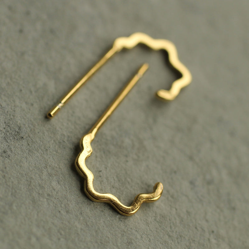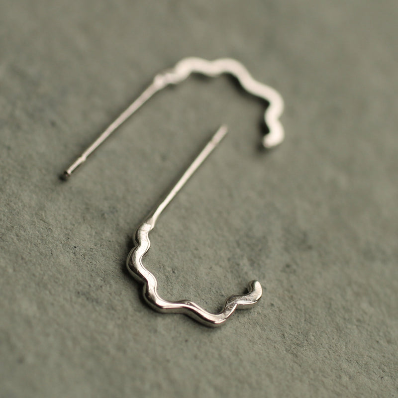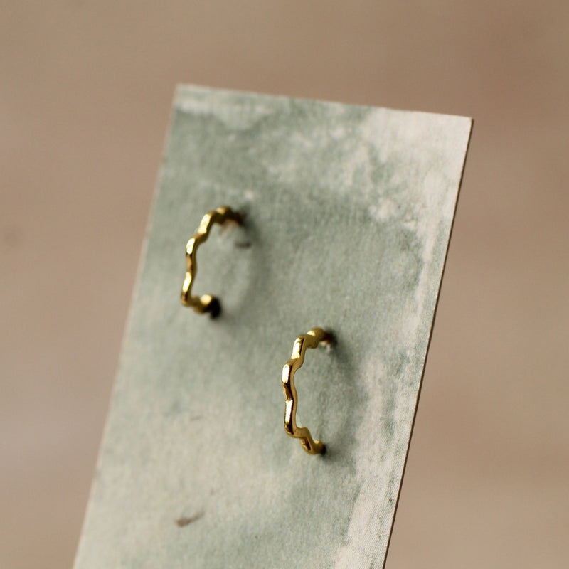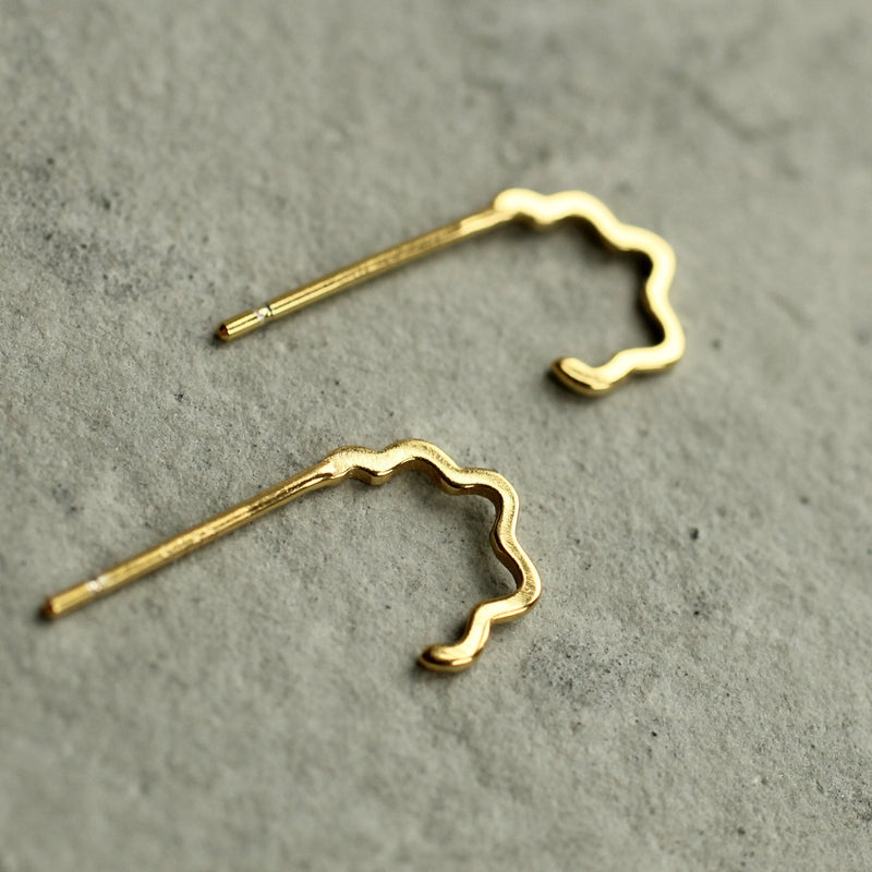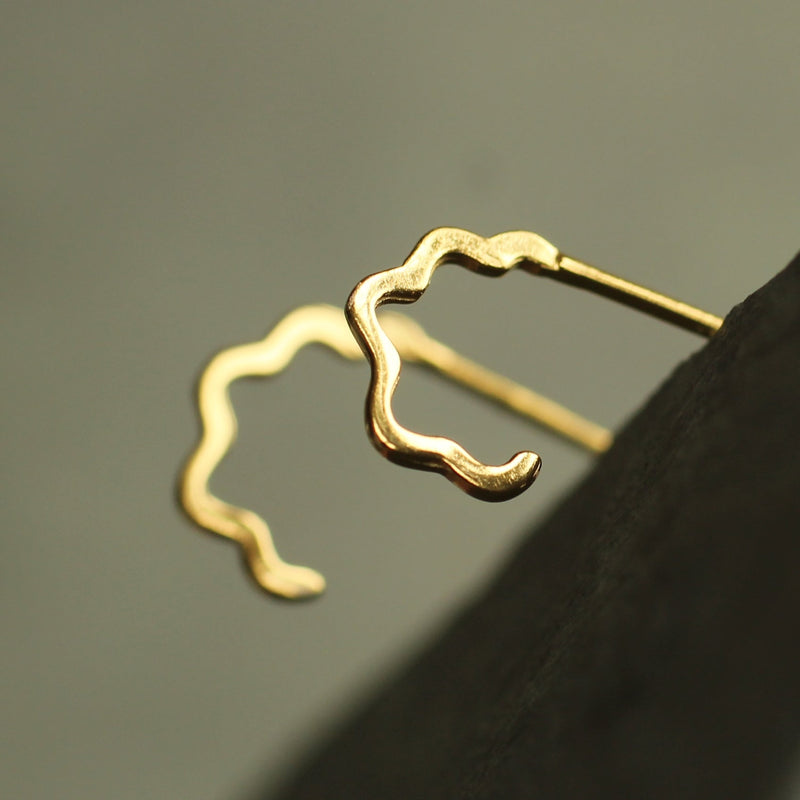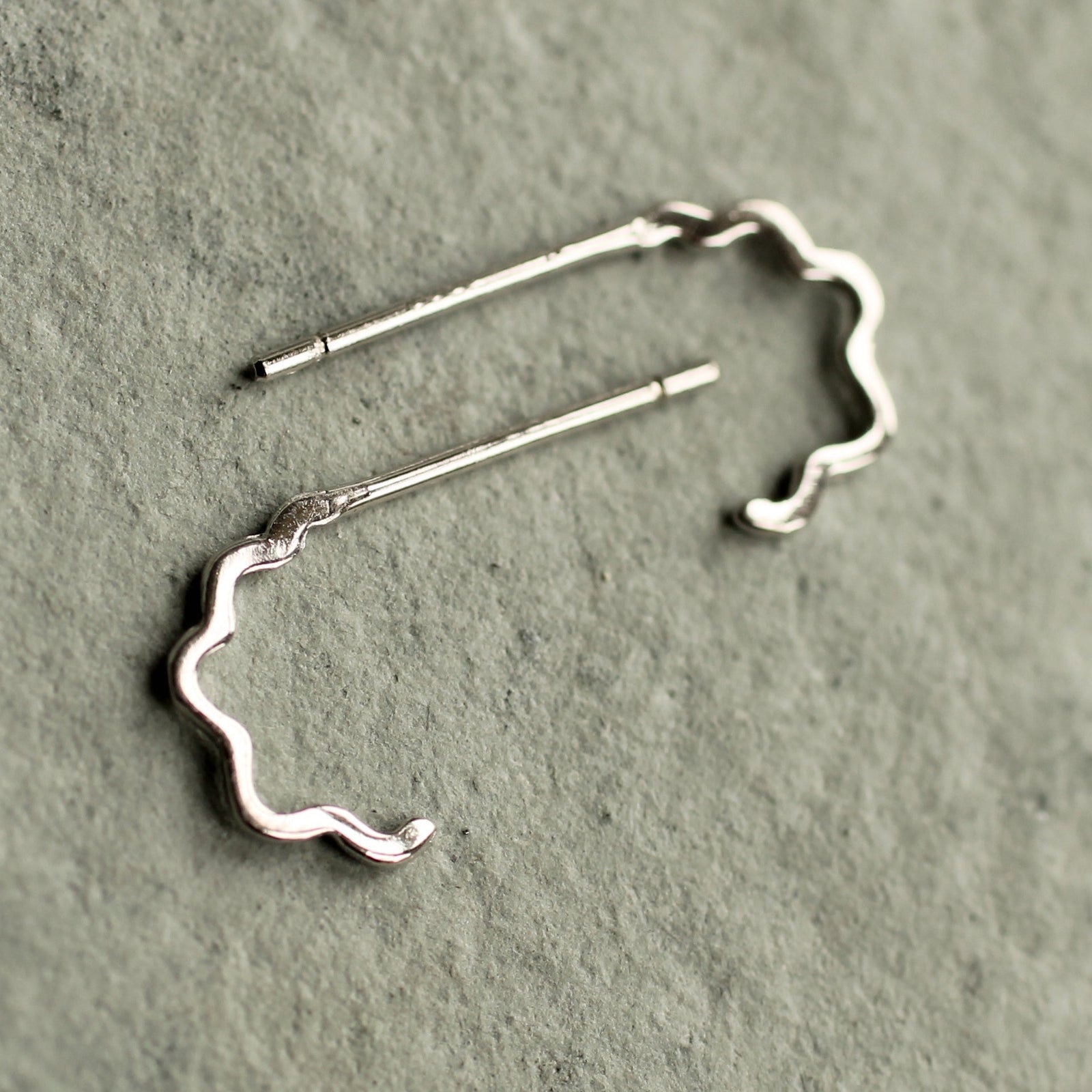 Tiny wavy hoop stud earrings (silver or gold vermeil)